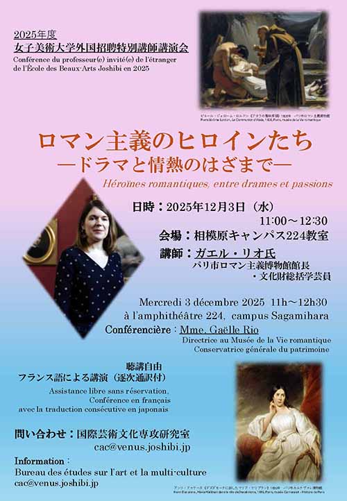 ロマン主義のヒロインたちとはどのようなもので、19世紀の芸術において彼女たちはどのように表現されていたのでしょうか?この講演では、19世紀フランスにおいて、劇的な物語の登場人物として表現された数々の女性たちを見つめなおしました。