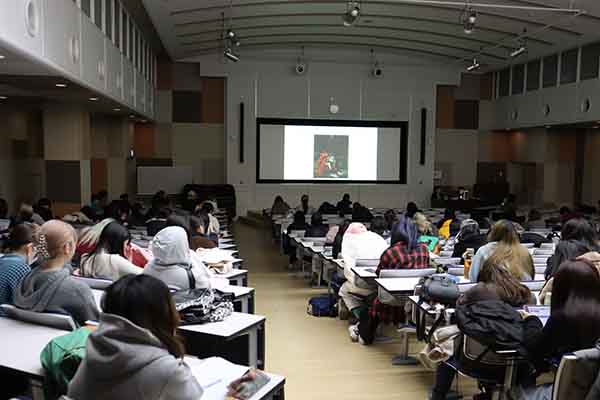 The lecture offered fascinating insights, including elements revealing shifts in women's social positioning. Questions from students continued unabated even after the lecture concluded, making it a highly stimulating and meaningful event.