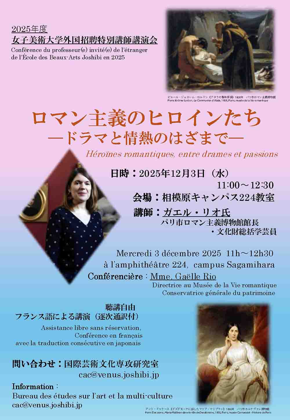 「ロマン主義のヒロインたち—ドラマと情熱のはざまで—」(フランス語による講演逐次通訳付)