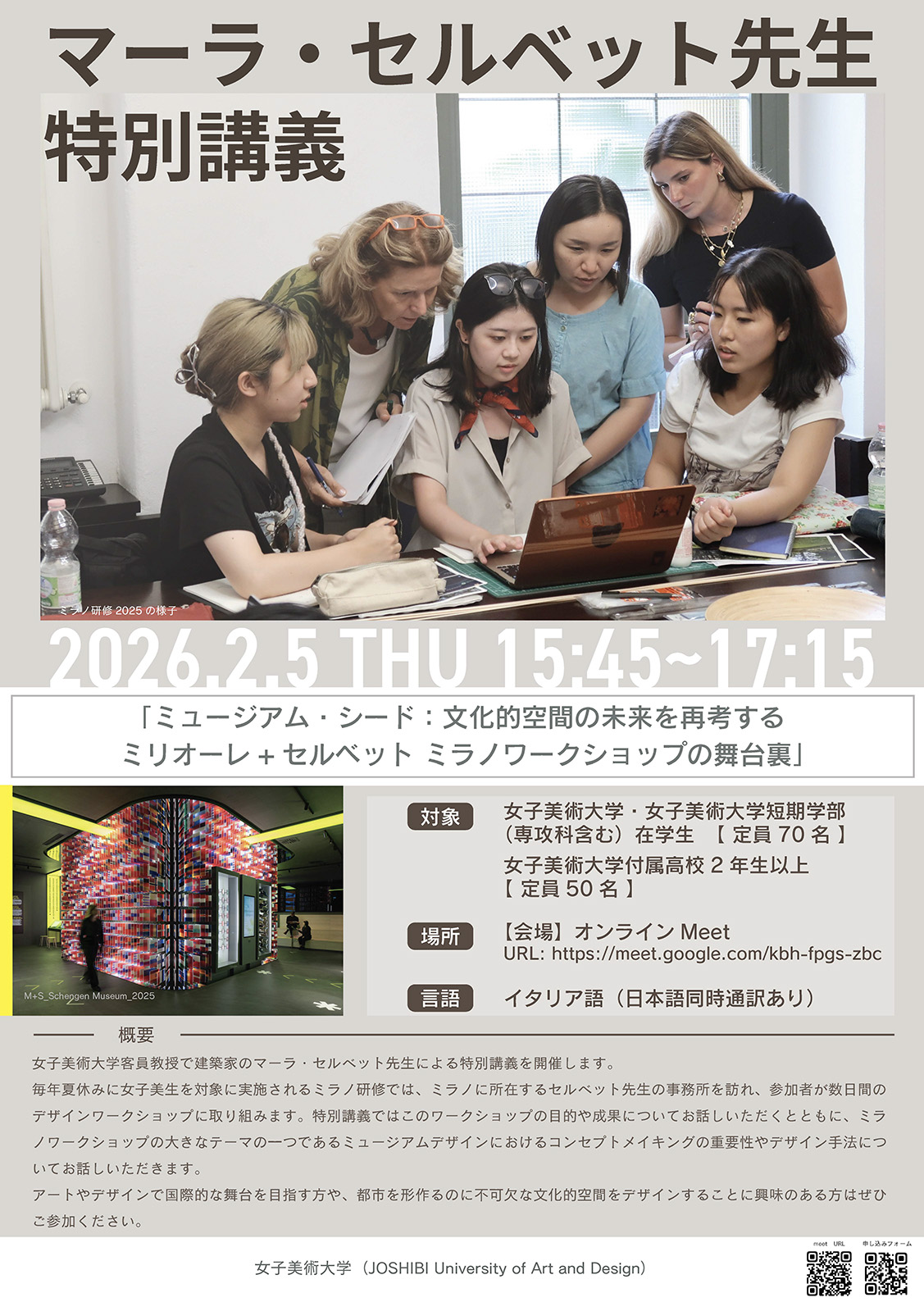 【開催方法変更】マーラ・セルベット先生 特別講義 「ミュージアム・シード:文化的空間の未来を再考する/ミリオーレ+セルベット ミラノワークショップの舞台裏」