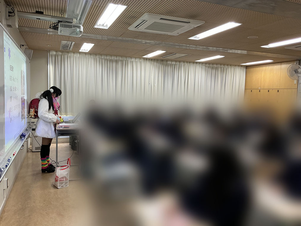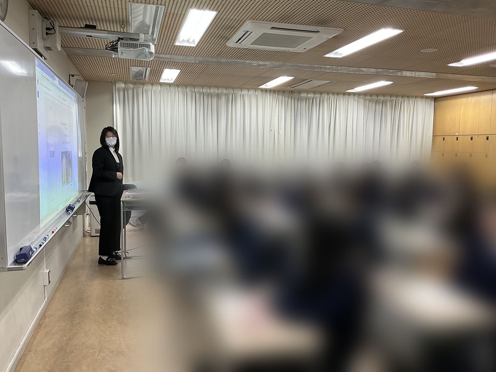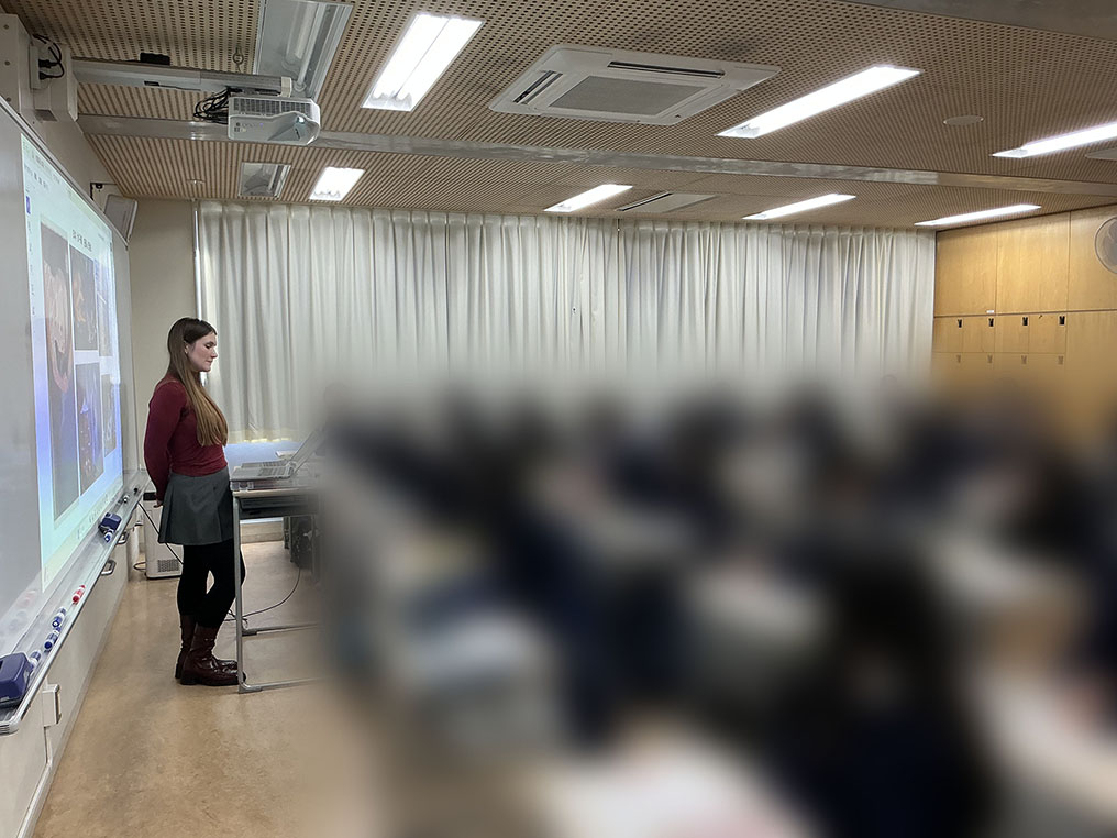 本学の学術協定校であるウィーン応用芸術大学(オーストリア)1名、本学短期大学部の正規留学生(韓国、インドネシア)2名の計3名を講師として派遣し、本学付属高等学校1年生に対し国際理解授業を実施しました。